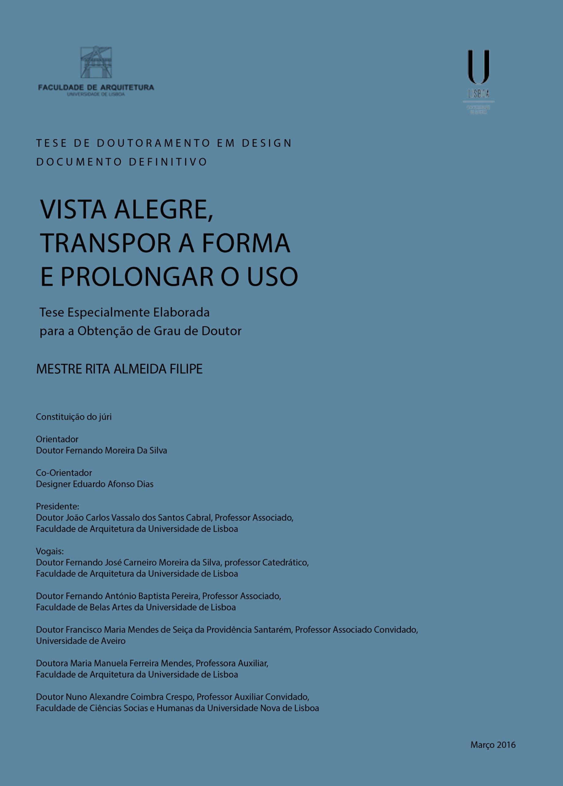 Doctor of Philosophy (PhD) in Product Design, Lisbon School of Architecture