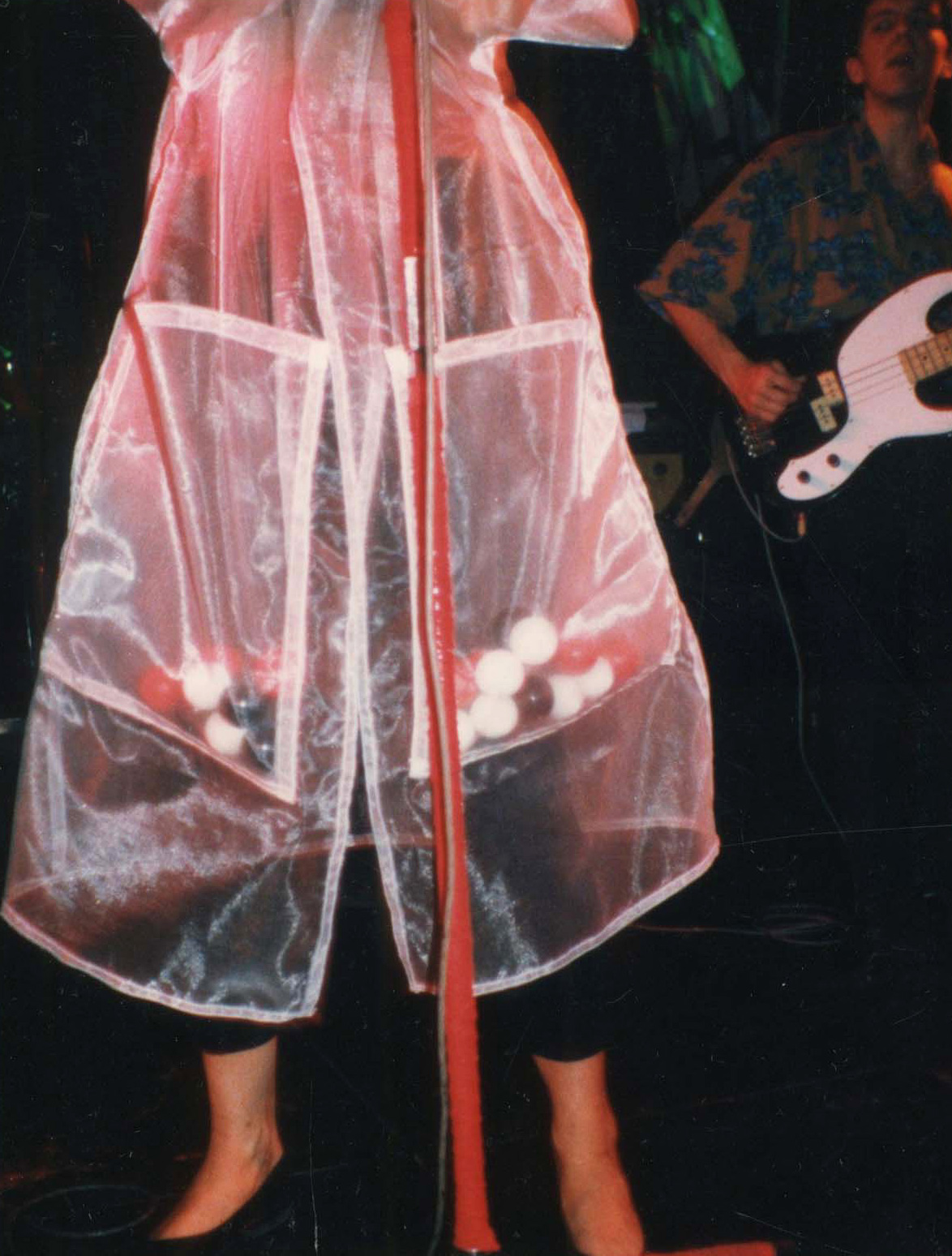 1st wardrobe: nylon, tafeta and plastic stripes2nd wardrobe: nylon, lycra and ping-pong balls