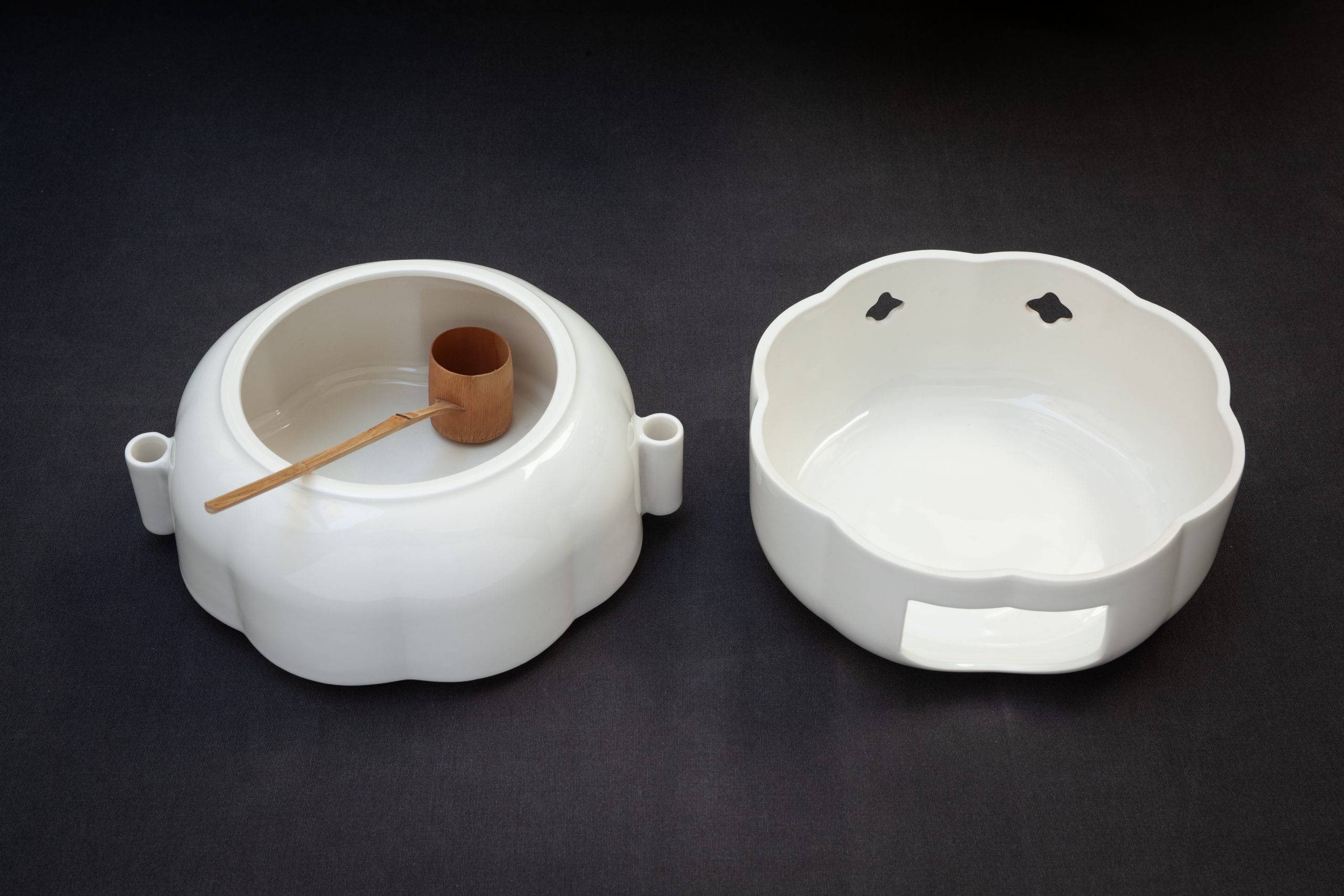 This set aims to illustrate tea customs in contemporary China, communicating to the Portuguese how to prepare and drink tea correctly. This work was based on a study trip to China, Beijing, and Jingdezhen, seeking inspiration from the traditional forms and rituals that still exist in the daily lives of the contemporary Chinese. Its forms are inspired by those of the Song Dynasty, where, according to collector Francisco Freire, the sophistication of objects and aesthetic concerns in everyday life were especially cultivated. The set will have a summer and a winter version, and the suggested colors are white and jade green.